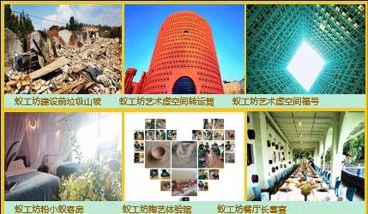 蚁工坊坐落于国家级历史文化名城、中国四大名陶之一建水紫陶发源地——云南红河建水。蚁工坊是一个以陶文化研发、生产和体验为主,汇吃住娱、游赏购多业态,重观赏艺术、认知艺术、体验艺术、融入艺术的文创旅游园区。2016年7月,建水县蚁工坊文化艺术投资有限公司,在建水一片废的老窑垃圾坡上规划建设,变废为宝,将垃圾山坡改变成一个独特、奇美的艺术园区。占地面积185亩,建筑面积23800㎡,2019年8月对外开放,2020年4月被批准为国家AAA级旅游景区,直至目前蚁工坊共接待中外游客40余万人次,成为到云南必去打卡的网红景点。