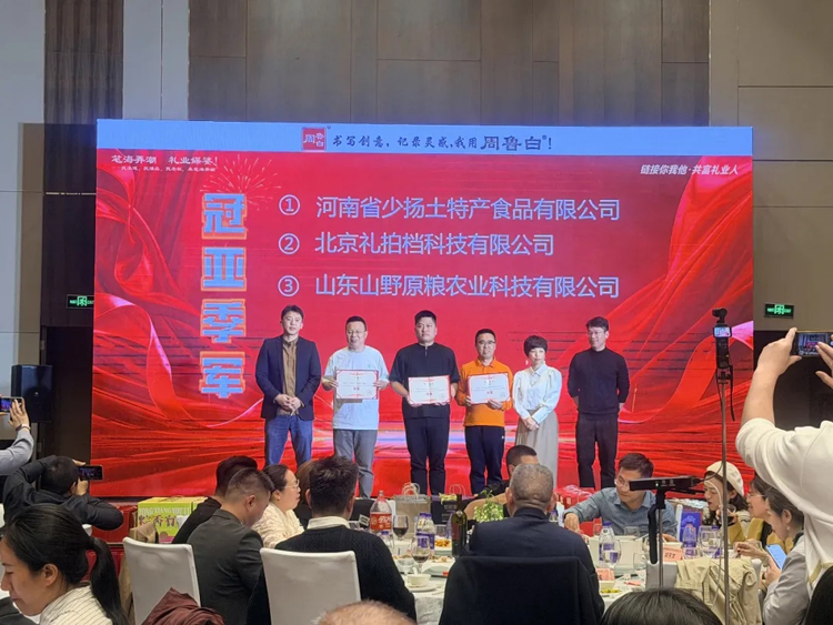颁奖典礼在热烈的气氛中圆满收官。同期,第三季中国好礼品大赛福州站获奖选手接受表彰,河南省少扬土特产食品有限公司、北京礼拍档科技有限公司、山东山野原粮农业科技有限公司分别荣获大赛冠、亚、季军。