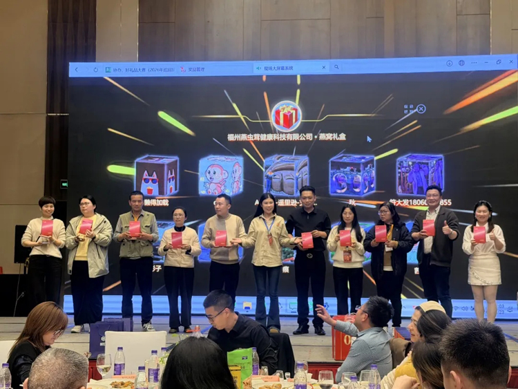 颁奖典礼结束后,激动人心的抽奖环节火热开启。现场嘉宾通过扫描大屏幕二维码参与抽奖,深圳市迈戈科技股份有限公司、湖南家乡味道农业开发有限公司、姚淑先(厦门)生物科技有限公司、北京礼拍档科技有限公司、福州燕虫茸健康科技有限公司、湖南省屈之源食品科技股份有限公司、好听智能科技(南京)有限公司、厦门茶汀礼品有限公司、锐珀尔健康科技有限公司、与时光同行品牌管理(北京)有限公司、杭州汇涵实业有限公司、江门市新会区宝福林茶业有限公司等12家赞助企业倾情支持,为现场来宾送出一份份诚意好礼。